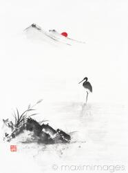 heron, herons, bird, nature, zen, animal, painting, spiritual, sumi-e, sunset, illustration, sun, pond, standing, symbol, landscapes, view, birds, design, art, animals, japanese, rising, red, oriental, single, one, landscape, mountains, designs, sumi, sumie, artwork, elegant, graceful, grace, intricate, night, artistic, fine art, bamboo, emblem, bamboos, beautiful, tranquil, chinese, asian, asia, sunrise, paintings, simple, minimalistic, simplistic, white background, white, sumi e, nobody, illustrations, color, colour