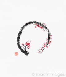 ensō, enso, circle, symbol, ring, sakura, blossom, cherry, branch, blossoms, flowers, painting, illustration, tree, universe, zen, icon, iconic, design, symbolic, emblem, emblematic, art, infinity, eternity, void, cycle, cycles, nature, japanese, aesthetics, oriental, designs, mindfulness, spiritual, enlightenment, absolute, sumi-e, sumi, sumie, artwork, elegant, intricate, artistic, fine art, sakuras, chinese, bloom, blooming, blossoming, asian, ink, drawing, paintings, simple, minimalistic, simplistic, color, colour, light, white, red, pink, rice paper, black, print, wall art