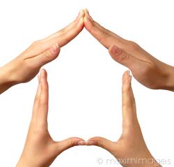 Hands making conceptual home symbol isolated on white background MaximImages.com