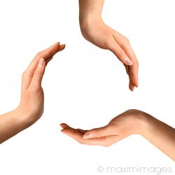 Descriptive keywords: recycling, recycle, hands, symbol, teamwork, concept, background, synergy, symbols, circle, unity, conceptual, icon, logo, renewal, reuse, safe, safety, system, nature, abstract, white background, isolated, making, white, round, around, holding, three, people, design, copyspace, copy space