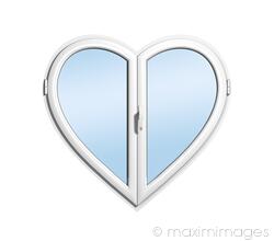 Heart-shaped PVC uPVC window isolated on white background. Creative concept. MaximImages.com