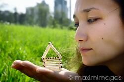 Descriptive keywords: house, matches, holding, hand, home, purchase, property, housing, real estate, woman, dreaming, daydreaming, dream, daydream, concept, concepts, conceptual, symbol, symbolic, mortgage, metaphor, metaphorical, color, colour, green, close up, closeup, person, one person, people, small, model, construction, architecture