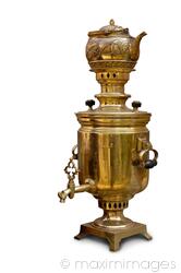 Descriptive keywords: samovar, russian, kettle, ukrainian, antique, antiques, samovars, russia, ukraine, eastern, europe, culture, cultural, history, historical, vintage, brass, metal, old, tea, pot, nobody, drink, isolated, object, objects, white, studio shot, white background, cutout, cut out, single object, gold, golden, boiler, historic, tradition, traditions, traditional, gilt