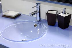bathroom, sink, glass, violet, modern, elegant, contemporary, style, stylish, purple, blue, design, fancy, tap, faucet, interior, nobody, fixture