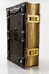 Royalty-Free (micro) photo of Closeup of rustic ancient book photo album with hard ornamental leather cover and shiny brass clasps Isolated silhouette on white background Photo by Oleksiy Maksymenko. This image is available for licensing for a variety of editorial and commercial uses in publications, designs, print and online.