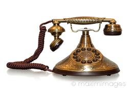 Royalty-Free (micro) photo of Retro stylized brass metal telephone classic series Paramount collection. Isolated vintage phone on white background with a clipping path. Photo by Oleksiy Maksymenko. This image is available for licensing for a variety of editorial and commercial uses in publications, designs, print and online.