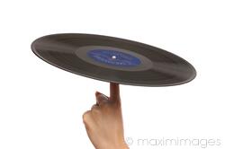 Vinyl record spinning on a finger isolated on white background MaximImages.com
