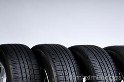Set of all-season car tires isolated on gray background MaximImages.com