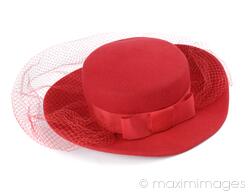 Red elegant veiled womens hat isolated on white background MaximImages.com