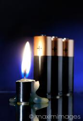 Descriptive keywords: power, source, sources, batteries, energy, candle, electricity, concept, conceptual, burning, light, battery, alternative, charge, ending, cell, environmental, clean, nobody, fuel, progress, technology, black, technologies, still life, artistic, fuels, sustainability, flame, fire
