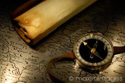 Descriptive keywords: compass, map, travel, journey, parchment, adventure, tourism, past, time, old, antique, vintage, retro, navigation, compas, traveling, still life, closeup, close up, concept, magnetic, conceptual, artistic, tour, treasure, pilgrimage, grungy, rustic, nobody