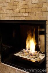 Descriptive keywords: fireplace, flame, fire, gas, natural, modern, contemporary, interior, design, furnace, architecture, architectural, indoor, indoors, nobody, closeup, close up, details, burning, heat, stones, high-tech, two-side, glass, double