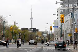 Toronto view on CN tower from Bloor and Spadina street intersection MaximImages.com
