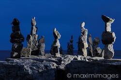 Descriptive keywords: stones, rocks, balanced, balance, figures, sculptures, statues, night, nighttime, mysterious, stone, mystery, canada, ontario, moonlight, dark, dramatic, abstract, spiritual, stacked, stacks, piles, rock, poles, sculpture, figure, symbol, symbolic, artistic, art, nature, scene, scenic, standing, upright, blue, sky, nobody, eerie, human, magical, magic, beautiful, toronto, silhouette, water, view, people, culture, cultural, illuminated, tranquil, tranquility, lake, inukshuk, inuit