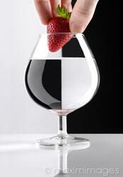 Descriptive keywords: strawberry, liquid, water, glass, drink, juice, juicy, fruit, red, hand, holding, beverage, adding, putting, black, white, refraction, effect, optical, illusion, scent, transparent, abstract, food, abstraction, appetizing, vitamins, bright, color, liqueur, concept, conceptual, half, contrast, divided, optics, halved, simple, nobody, metaphor, closeup, close up, refracting, reflection, reflecting, symbol, sign, aroma, simplicity, artistic, object, isolated, purity, clear, clean, pure, only, single, one, people