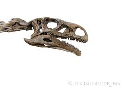 Head of a dinosaur skeleton fossil closeup isolated on white background MaximImages.com