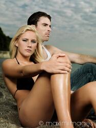 Descriptive keywords: couple, beach, man, woman, young, people, together, sitting, sand, adults, recreation, recreational, summer, summertime, vacation, vacations, swimwear, swim suit, swim wear, looking at camera, front, lifestyle, fashion, young adults, two people, shore, sea, tourism, relaxing, sea shore, seashore, attractive, pretty, sexy, fancy, couples, heterosexual couple, outdoor, outdoors, outside, two, leisure, style, stylish, caucasian, twentysomething, twenties, 20-30, 20s, copyspace, copy space
