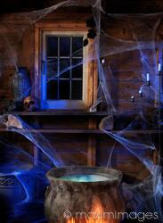 Descriptive keywords: cauldron, potion, cabin, hut, halloween, scary, old, house, boiling, steaming, magic, fabulous, fable, fairy tale, fantasy, preparing, cooking, concocting, making, frightening, eerie, bizarre, wicked, dark magic, night, dark, horrifying, cobwebs, spider webs, pot, witch, flame, fire, weird, haunted house, ragged, artistic, brewing, nobody, indoor, indoors, inside, interior