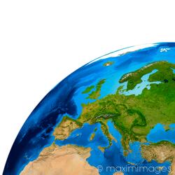 View of the Earth globe from space showing European continent. Isolated on white background. MaximImages.com