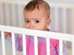Descriptive keywords: baby, infant, crib, bed, girl, child, little, mouth, teeth, teething, chewing, cot, baby bed, funny, humorous, comical, face, head and shoulders, portrait, look, looking, looking at camera, inside, indoor, indoors, one person, people, children, babies, infants, alone, single, mixed race person, female, emotional, expressive, character, expression, expressions, emotions, seven months old, 6-9 months, one year old, closeup, close up, close-up, copyspace, copy space