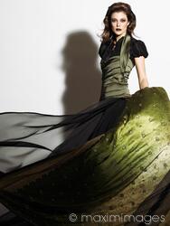 Descriptive keywords: fashion, woman, dress, long, beautiful, style, stylish, fashionable, edgy, girl, female, young, one person, sexy, high fashion, trendy, trend, posing, model, long dress, flying, wind, fabric, textile, dressed, wear, clothing, clothes, wearing, gorgeous, beauty, elegant, glamorous, green, luxury, luxurious, haute couture, design, vogue, silk, silky, studio shot, white background, white, caucasian, twentysomething, twenties, 20-30, twenty, young adult, women, people, isolated, side view, looking at camera, eye contact, editorial, standing, full length, full body, copyspace, copy space