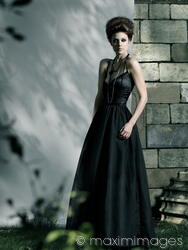 Rights-Managed photo of High fashion photo of a beautiful woman wearing long black dress Photo by Alex Maxim. This image is available for licensing for a variety of editorial and commercial uses in publications, designs, print and online.