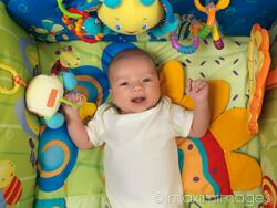 Descriptive keywords: baby, boy, child, infant, toys, playing, play mat, play place, playing mat, happy, cute, smiling, smile, face, cheerful, joy, fun, funny, enjoying, toy, colorful, colourful, colors, colours, vivid, bright, newborn, lying, soft, one person, one, single, only, above, high angle view, look, looking at camera, people, children, babies, kids, infants, newborns, six week, six weeks, 1-2 months, 1 month, one month, 1 month old, skin, little, small, down, indoor, indoors, caucasian, head and shoulders, portrait, waist up, humorous, surrounded, barrier, playground, inside, laughing, closeup, close up, close-up