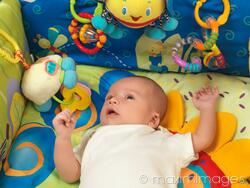 Descriptive keywords: baby, boy, child, infant, toys, playing, play mat, play place, playing mat, cute, fun, funny, toy, colorful, colourful, colors, colours, vivid, bright, newborn, lying, soft, one person, one, single, only, people, children, babies, kids, infants, newborns, six week, six weeks, 1-2 months, 1 month, one month, 1 month old, skin, little, small, down, indoor, indoors, caucasian, portrait, humorous, surrounded, barrier, playground, inside, face, head and shoulders, waist up, closeup, close up, close-up