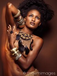 Descriptive keywords: black, woman, fashion, model, african, jewelery, jewelry, jewellery, hair, topless, necklace, bracelets, accessories, covering, covered, breast, brown, hairstyle, face, style, young, edgy, african ethnicity, african american, sexy, afro, afro-american, young adult, one person, studio shot, studio, one, single, artistic, blur, blurred, curly hair, light, effect, front view, high fashion, dark, beauty, portrait, beautiful, posing, women, female, people, waist up, expressive, expression, half naked, body, attractive, pretty, glamorous, glamour, models, standing, isolated, color background, brown background, big hair, bangles, bracelet, many bracelets, twenties, twenty, twentysomething, 20, 20s, 20-30, editorial