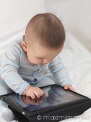 Royalty-Free photo of Six month old baby boy playing with Apple iPad tablet computer Photo by Oleksiy Maksymenko. This image is available for licensing for a variety of editorial and commercial uses in publications, designs, print and online.