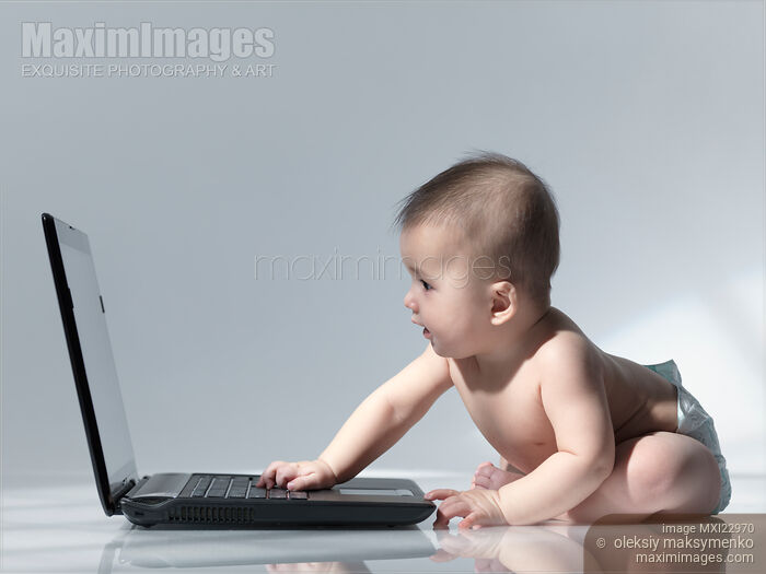 Descriptive keywords: baby, computer, laptop, infant, child, sitting, in front, cute, boy, kid, children, babies, infants, kids, technology, little, small, young, male, isolated, clever, smart, computers, notebook, playing, one, working, childhood, business, electronics, concept, conceptual, gray background, gray, learning, education, development, developing, curiosity, educational, bare, diaper, learn, lifestyle, monitor, display, curious, busy, concepts, side view, six months old, 6 month, one person, people, floor, full length, full body, indoor, indoors, studio shot, looking, copyspace, copy space, cutout, cut out, cut-out