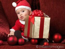 Descriptive keywords: christmas, santa, costume, baby, boy, present, gift, box, child, funny, humorous, humour, humor, holding, lap, big, wrapped, bow, bed, sofa, red, baubles, decoration, santas, one, santa's, outfit, wearing, suit, costumes, clothes, elf, cute, hat, cap, xmas, holidays, holiday, dressed, dressed up, little, infant, male, children, babies, sitting, couch, home, color, colour, colorful, indoor, indoors, one person, single, only, front view, gifts, presents, looking at camera, people, eye contact, kids, new year, newyear, portrait, young, caucasian, six month old, 6 months, artistic, gold, golden, alone, colors, full length, full body