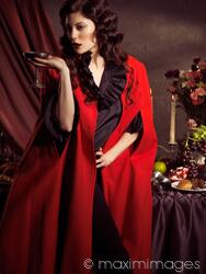 Descriptive keywords: fashion, woman, feast, banquet, festive, table, dinner, beautiful, food, standing, wearing, red, coat, clothing, clothes, autumn, fall, black, meal, remains, left, female, young, fancy, fashionable, high fashion, artistic, fine art, girl, women, people, one person, posing, model, beauty, dressed, dressed up, style, stylish, concept, conceptual, festivity, glass, wine, silverware, vintage, classic, victorian, rococo, antique, lady, candles, single, one, only, alone, indoor, indoors, interior, inside, served, restaurant, leftovers, party, celebration, dark, burgundy, elegant, caucasian, twentysomething, 20-30, twenties, 20s, thirty, thirties, adult, young adult, three quarter length, drinking, holding, hand, silver, luxury, luxurious, gorgeous, brunette, front view