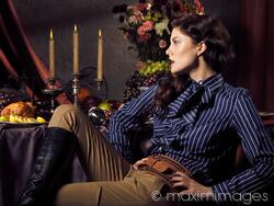 Descriptive keywords: fashion, woman, feast, banquet, festive, table, dinner, beautiful, food, sitting, chair, wearing, clothing, clothes, meal, female, young, fancy, fashionable, trendy, high fashion, artistic, fine art, girl, women, people, one person, posing, model, pose, beauty, dressed, dressed up, style, stylish, concept, conceptual, festivity, blouse, shirt, reclining, pants, vintage, classic, victorian, rococo, antique, lady, candles, single, one, only, alone, indoor, indoors, interior, inside, served, restaurant, party, celebration, dark, elegant, caucasian, twentysomething, 20-30, twenties, 20s, thirty, thirties, adult, young adult, three quarter length, side view, luxury, luxurious, gorgeous, brunette, copyspace, copy space
