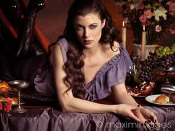 Descriptive keywords: fashion, woman, feast, banquet, festive, table, dinner, beautiful, sexy, sensual, seductive, food, lying, meal, remains, left, female, young, fancy, fashionable, high fashion, artistic, fine art, girl, women, people, one person, posing, model, beauty, dressed, dressed up, style, stylish, concept, conceptual, festivity, wine, vintage, classic, victorian, rococo, antique, lady, candles, single, one, only, alone, looking at camera, eye contact, indoor, indoors, interior, inside, served, restaurant, leftovers, party, celebration, dark, red, burgundy, blouse, elegant, purple, caucasian, young adult, adult, twentysomething, 20-30, twenties, 20s, pretty, attractive, glamorous, glamour, full length, across, on top, luxury, luxurious, gorgeous, brunette