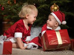 Descriptive keywords: christmas, gifts, children, kids, christmas tree, presents, boxes, gift, present, baby, two, babies, toddler, child, girl, boy, together, smiling, happy, opening, red, santa, suit, outfit, costume, costumes, funny, humour, humor, humorous, little, young, sitting, under, sharing, siblings, brother, sister, holiday, holidays, xmas, sorting, taking, two people, caucasian, two year old, 1-2 year old, 2-3 year old, 1 year old, 8 months, 6-12 months, male, female, home, floor, indoor, indoors, inside, colorful, colors, people, new year, newyear