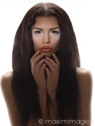 Rights-Managed photo of Artistic expressive beauty portrait of a young beautiful woman with long dark hair Photo by Alex Maxim. This image is available for licensing for a variety of editorial and commercial uses in publications, designs, print and online.