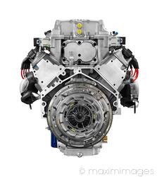 Royalty-Free photo of Cadillac 556HP 6.2L V8 car engine from the clutch side isolated on white background with clipping path Photo by Alex Maxim. This image is available for licensing for a variety of editorial and commercial uses in publications, designs, print and online.