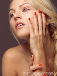 Descriptive keywords: nail polish, nails, beauty, woman, manicure, beautiful, young, polished, hands, one person, portrait, girl, beauty treatment, beauty care, orange, red, female, model, blond, blonde, style, stylish, fashion, hair, hairstyle, hair-style, blond hair, headshot, concept, conceptual, color, colour, bright, isolated, only, studio shot, head and shoulders, people