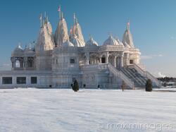 Descriptive keywords: temple, hindu, swaminarayan, mandir, baps, shri, marble, white, hand-carved, carved, toronto, ontario, canada, landmark, landmarks, religious, religion, hinduism, canadian, architecture, architectural, building, carving, carvings, indo-canadian, indian, temples, hindu temple, winter, wintertime, snow, snowy, exterior, outside, outdoor, outdoors, day, facade, mandirs, nobody, blue, sky, copyspace, copy space