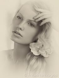 Descriptive keywords: beauty, beautiful, woman, portrait, face, blond, flower, hair, blonde, romantic, soft, attractive, pretty, one person, vintage, victorian, retro, sepia, women, young, girl, female, headshot, head and shoulders, front view, caucasian, lady, beauty care, beauty treatment, glamorous, closeup, close up, light, toned, tinted, monochrome, black and white, grayscale, young adult, portraits, faces, people, twentysomething, twenties, 20s, 20-30, twenty