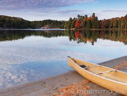Descriptive keywords: canoe, autumn, fall, nature, lake, trees, park, reflection, reflections, reflecting, red, colorful, colourful, colors, colours, shore, ashore, beach, coast, shoreline, canoes, boat, nobody, ontario, canada, killarney, provincial park, parks, forest, calm, water, landscape, landscapes, scene, scenic, scenery, tranquil, lakes, george lake, outdoor, outdoors, beautiful, sunset, travel, destination, recreation, tourism