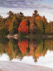 Descriptive keywords: autumn, fall, nature, lake, trees, park, reflection, reflections, reflecting, red, colorful, colourful, colors, colours, leaves, leafage, foliage, nobody, ontario, canada, killarney, provincial park, parks, forest, calm, water, landscape, landscapes, scene, scenic, scenery, tranquil, lakes, george lake, outdoor, outdoors, beautiful, sunset