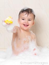 baby, child, bath, bathing, foam bath, bubble bath, boy, toddler, happy, smiling, enjoying, face, foam, duck, rubber duck, toy, playing, hand, bubbles, bathtub, bath tub, bathroom, washing, cleaning, hygiene, one, fun, standing, soap, male, babies, children, kid, kids, toddlers, laughing, one person, two year old, 2 years, 1-2 years, taking bath, 2-3 years, smile, indoor, indoors, waist up, caucasian, covered, emotional, emotions, funny, joy, front view, copyspace, copy space, soapsuds, soap suds, soapsud, soap sud, colors, colorful, people