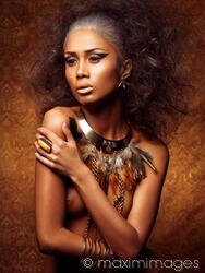 Descriptive keywords: beauty, exotic, woman, bird, feathers, accessories, style, styling, crow, animal, avian, female, girl, face, magpie, bird-like, bird like, portrait, topless, women, young, faces, portraits, dramatic, expressive, artistic, nude, half nude, half naked, half-nude, necklace, necklaces, shiny, skin, beautiful, one person, sexy, sensual, sensuality, birdy, tribal, shaman, shamanic, native, aboriginal, indian, american, aztec, wild, jewelry, jewellery, jewelery, hair, hairstyle, hair style, styled, fashion, brown, gold, golden, feathery, creative, ethnic, ethnicity, ethnics, asian, pacific islander, hawaiian, makeup, make up, feather, make-up, unusual, edgy, bizarre, studio shot, waist up, half body, expression, front view, indoor, teen, teenage, teens, teenager, indoors, people, twentysomething, twenties, twenty, 20s, 20, 20-30, copyspace, copy space