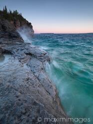 Descriptive keywords: nature, water, landscape, georgian bay, stormy, ontario, canada, sunrise, scenic, scenery, scene, lake, lakes, waves, storm, splashing, against, rock, rocky, shore, early, morning, blue, dramatic, dynamic, bruce peninsula, national park, park, parks, rocks, huron, sea, outdoor, outdoors, scenics, summer, summertime, north america, nobody