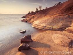 This Rights-Managed stock photo 'Georgian Bay red rocks landscape at dawn' is created by Alex Maxim and can be licensed for your advertising, corporate, editorial or other use. Click 'License this Image' to estimate the license fee and add the image to cart. Licensed files are delivered electronically as soon as the payment is processed.