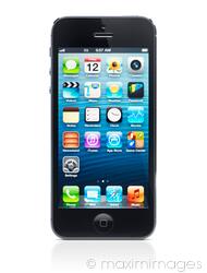 Royalty-Free photo of Apple iPhone 5 black with desktop icons on its display isolated on white background with clipping path Photo by Oleksiy Maksymenko. This image is available for licensing for a variety of editorial and commercial uses in publications, designs, print and online.