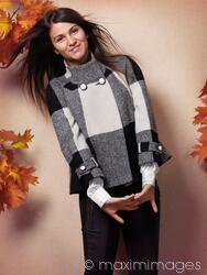 Smiling teenage girl wearing a coat fall fashion photo You can buy a license or prints of this high-resolution, high-quality photo suitable for large-size publications, large-format prints and posters.