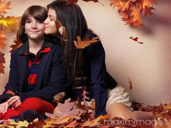Descriptive keywords: children, fashion, girl, boy, teenage, teen, teens, preteen, school, schoolchildren, students, outfit, outfits, kiss, kissing, lifestyle, emotional, teenager, fall, autumn, kids, happy, smiling, smile, smiles, together, brother, sister, two people, siblings, sitting, down, child, teenagers, clothes, style, stylish, fashionable, fashionably, dressed, young, wearing, clothing, jacket, jackets, european, english, british, pants, childrens, boys, female, girls, falling, red, trendy, studio shot, caucasian, looking at camera, eye contact, people, front view, portrait, colors, colorful, nature, concept, fun, leafage, foliage, maple, season, seasonal, casual, thirteen, fourteen, 13, 14, 10, 11, ten, eleven